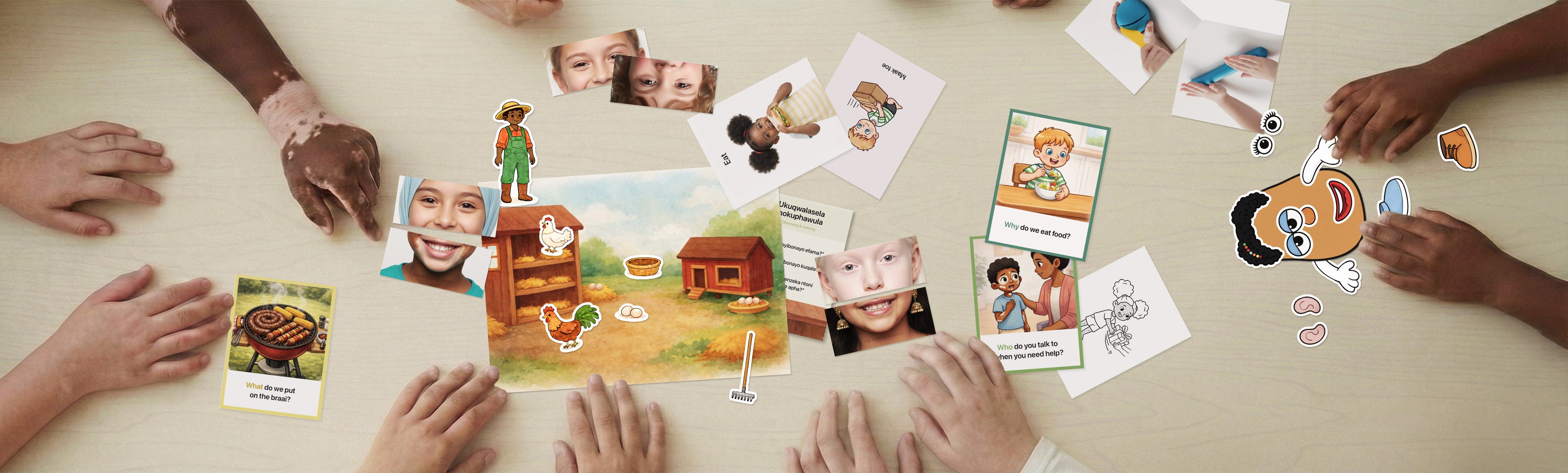 Visual Wh-questions that support thinking, explaining, and everyday conversation.