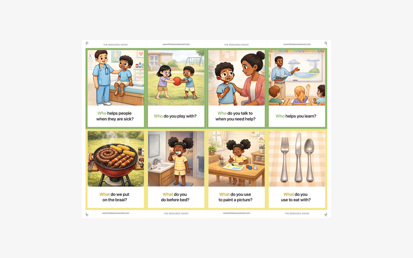 This resource is often used alongside play, books, or daily routines, allowing adults to model questions naturally and adjust support based on the child’s level of understanding.